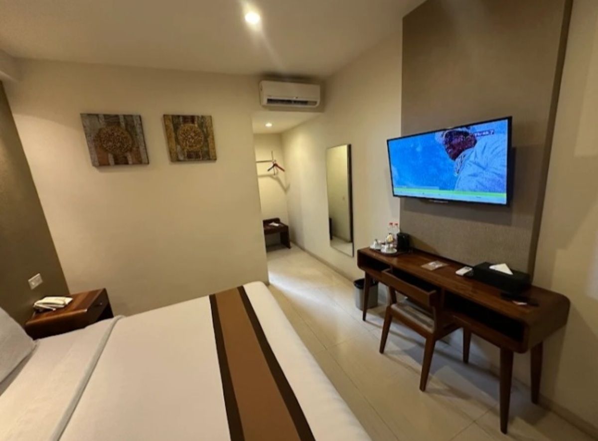 Pelayanannya juga sangat ramah, sehingga pengalaman menginap terasa lebih hangat dan menyenangkan. Kamarnya sendiri didesain simpel namun tetap luas dan nyaman, cocok untuk tamu yang ingin tempat istirahat yang nyaman dan menenangkan. Fasilitas yang tersedia cukup lengkap, mulai dari TV, AC, teko listrik untuk memanaskan air, welcome drink, dan berbagai fasilitas standar lainnya. Dengan semua kenyamanan tersebut, harga per malamnya tetap tergolong murah, yaitu sekitar Rp300.000 saja per malam.