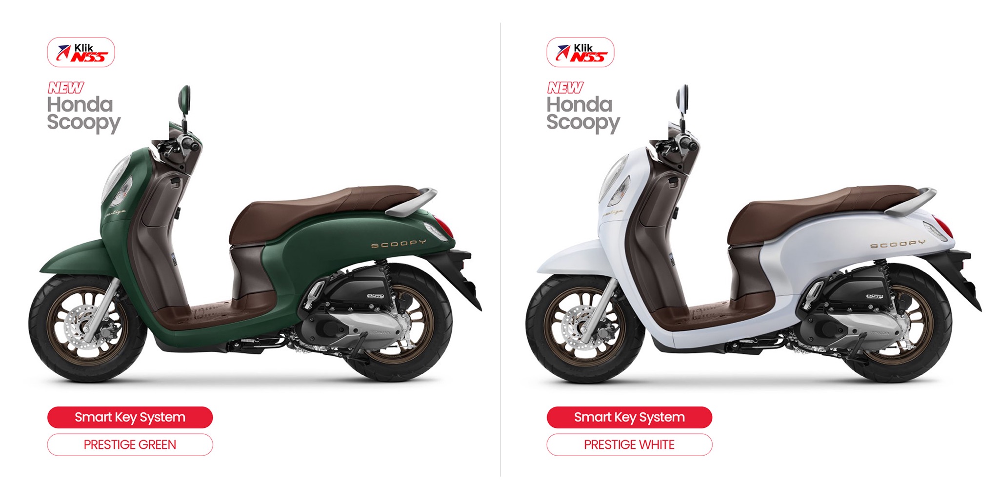 Perbedaan Honda Scoopy 2026 tidak hanya berhenti di warna bodi. Jok pada masing-masing varian juga dibuat berbeda, baik dari warna maupun tekstur. Varian Prestige dan Stylish memiliki jok dengan nuansa cokelat yang lebih halus dan nyaman, sementara varian Fashion masih menggunakan jok dengan karakter yang lebih sederhana.
